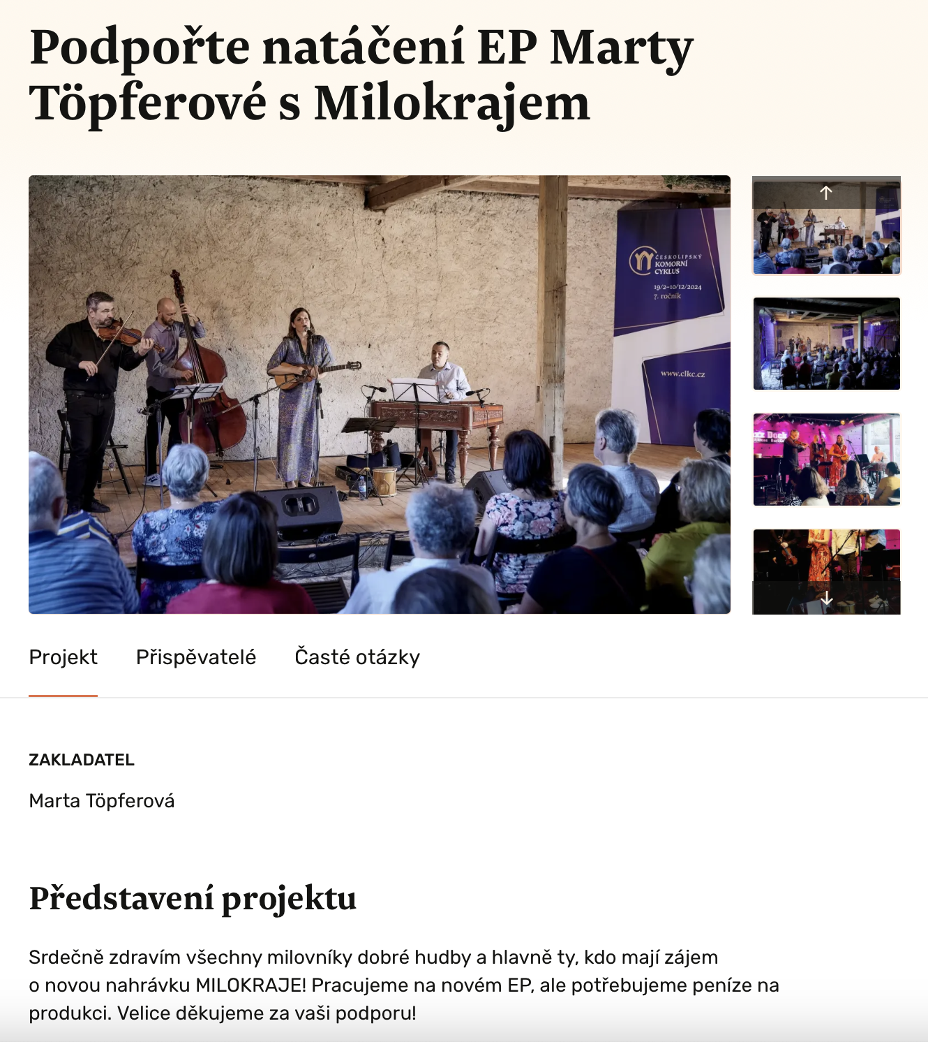 🇨🇿 DONIO.cz sbírka na natáčení EP Marty Töpferové & Milokraje